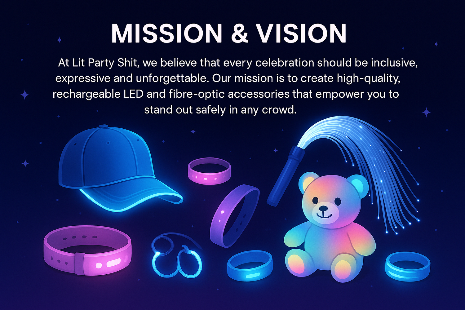 Many stores sell glow accessories, but LitPartyShit stands out because we control the entire process from design to delivery. We emphasise safety, transparency and customer happiness. According to e‑commerce best practices, telling a story and showing your personality helps build trust and differentiate your store. We share our story and values openly so you know who’s behind the products.
